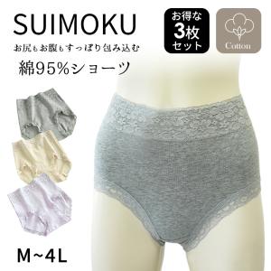 スイモク お得 3枚セット レディースショーツ 下着 綿95% ハイウエスト レース ストレッチ素材 通気性 パープル グレー ベージュ 5654197-3P 水沐良品