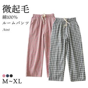 綿100% ルームパンツ レディース 微起毛 秋 冬 チェック柄 柔らかい 肌に優しい 寝巻き パジャマ ふんわり 起毛素材 ポケット付き ルームウェア スイモク