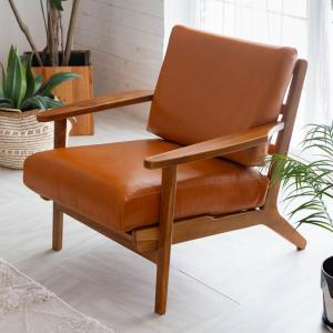 ソファ 1人掛け 1P 本革 木 幅 69cm キャメル ブラウン レザーソファ アームソファ ソファー 天然木 チーク 革 91480