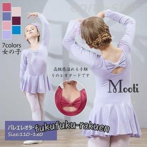 キッズ バレエ ワンピース 後ろリボン 長袖 レッスン レオタード 子供用 習い事 練習着 両手を動かしやすい 幼児 小学校 発表会 イベント用 体操服 練習 こども