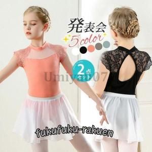 2点セット バレエ レオタード 子供 レース スカート付 キッズ ジュニア レッスン着 ダンス 衣装 女の子 幼稚園 小学生 新体操 練習 発表会