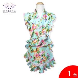 [お子様用]エプロンとピキージョのセット 花柄 色:水色×ピンク系 子供用フリーサイズ[お子様用][フラメンコ用]