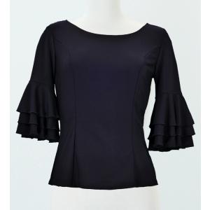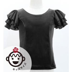 キッズ フラメンコ 選べる襟ぐり 3段フリルスリーブ ブラウス ブラック 120・140サイズ Jp181bk