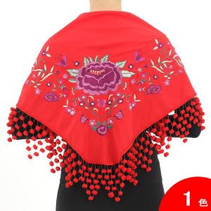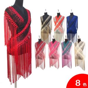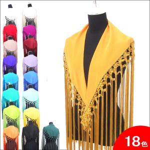 フラメンコ衣装 シージョ(ショール) マントン 三角 フリンジ 無地 ヒップスカーフ ダンス衣装 編みこみ 黒 赤 白 ミカドレス cy267-pa