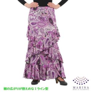 スカート Bandolera(バンドレーラ) 3段クロスフリル ペーズリー柄 色:パープル系[フラメンコ用]