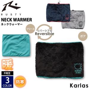 RUSTY ラスティ ネックウォーマー メンズ レディース リバーシブル ボア フリース ブランド ロゴ 秋 冬 保温 防寒 UVカット ドローコード付き