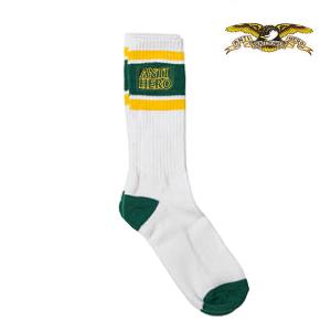 ANTIHERO SKATEBOARDS ソックス アンタイヒーロー 白 メンズ ANTI HERO BLACK HERO OUTLINE SOCKS (WHITE/DK GREEN/GOLD)