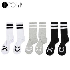ソックス メンズ レディース ポーラー Polar Skate Co. | polar skateboard HAPPY SAD SOCKS (WHITE HEATHERGREY BLACK)