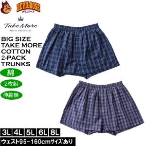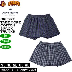 大きいサイズ メンズ Take More 2枚セット 2Pチェック柄 布帛トランクス 2枚パック 伸縮性なし 布帛生地(メーカー取寄) 3L 4L 5L 6L 8L