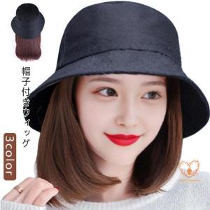 帽子付きウィッグ ボブ バケットハット 毛付き帽子 ストレート オールシーズン 医療用 かつら かつら付き ウィッグ付き 髪付き