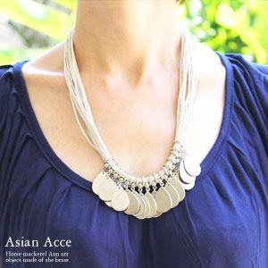 アジアン雑貨 ビーズを束ねたネックレス アイボリー アジア工房 10076
