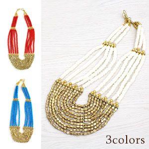 鮮やかビーズのエキゾチックネックレス3色展開 アジア工房 1166