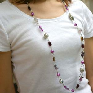 アジアン雑貨アメジストとボールビーズのロングネックレス 1319
