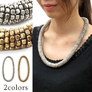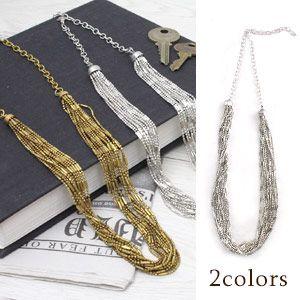 ロングビーズとボールビーズの多連ネックレス 2色展開 n302