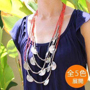 ビーズとメタルプレートの4連アジアンネックレス 5色展開 アジア工房 n-114