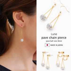 10mm パヴェボール チェーン ピアス イヤリング 10mm 3cm 4cm 日本製 オリジナルデザイン