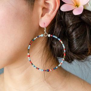 ピアス フープ ビーズ カラフル 揺れる フックピアス エスニック アジアン バリ雑貨 レディース おしゃれ 夏 12560