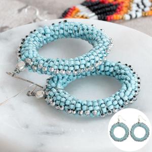 ピアス ドーナツ型 ビーズ ブルー 揺れる アジアン エスニック バリ雑貨 おしゃれ 丸 r3020