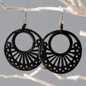ピアス ブラック 揺れる キャトルホーン アジアン エスニック モダン バリ雑貨 透し彫り風 大人 おしゃれ vn50360