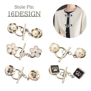 ストールピン レディース アクセサリー フォーマル ブローチ チェーン カーディガンクリップ ピン フェイクパール パール調 ビジュー フラワー 王冠