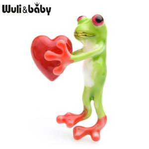 赤ハート グリーンカエル 合金エナメル 素敵 動物ブローチピン 女性 パーティーアクセサリー ジュエリー 新年 ギフト