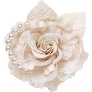 コサージュ パール付き ローズコサージュ バラ 薔薇 フォーマル 入学式 卒業式 式典 ヘッドドレス チャーム(ベージュ)