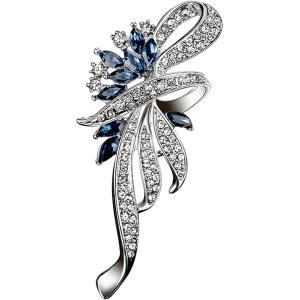 ブローチ コサージュ クリスタル フォーマル おしゃれ 結婚式 スーツ リボン ビジュー(ブルー, 標準)