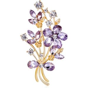 ミャオミャオ キュービックジルコニア 花 フラワー リース リーフ リング ブローチ アクセサリー レディース(パープル, 小さめ)