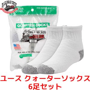RAILROAD SOCK ユース クォーターソックス 6足セット15cm〜21cm 靴下 ホワイト クォーター丈 くつ下 靴下 レイルロードソック 白 アメリカ カジュアル アメカジ