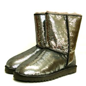 ムートン ブーツ スパンコール きらきら 靴 羊毛 スノーブーツ もこもこ シルバーUS9