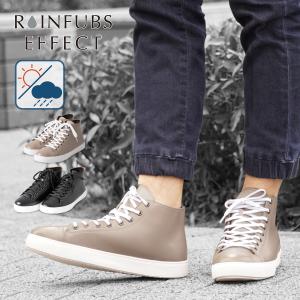 レインシューズ スニーカー メンズ ハイカット レザー風 2色 男性 雨靴 完全防水 通勤 梅雨対策 おしゃれ カジュアル