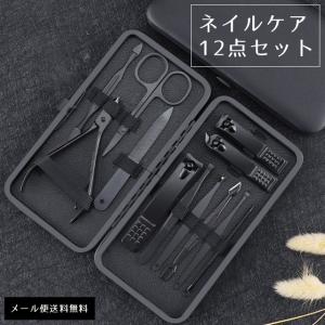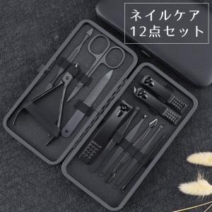 爪切り ネイルケア 12点セット ブラック 身だしなみ 耳かき ネイルニッパー 甘皮処理 手入れ やすり ケース付き ステンレス GPT 3点迄メール便OK(gu1b133)