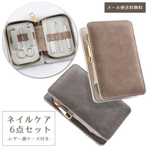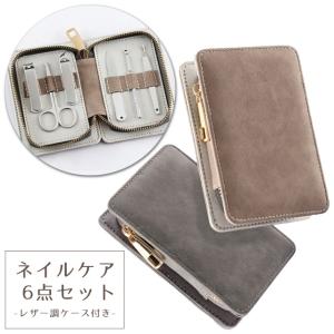爪切り ネイルケア 6点セット レザー調ケース コンパクト 身だしなみ 耳かき 甘皮処理 手入れ やすり ケース付き ステンレス GPT 2点迄メール便OK(gu1c214)