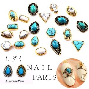 5個入り メタルパーツ コンチョ ターコイズ風 ゴールド シルバー ネイルパーツ ネイル用品 ラウンド オーバル ティアドロップ アートパーツ デコ素材
