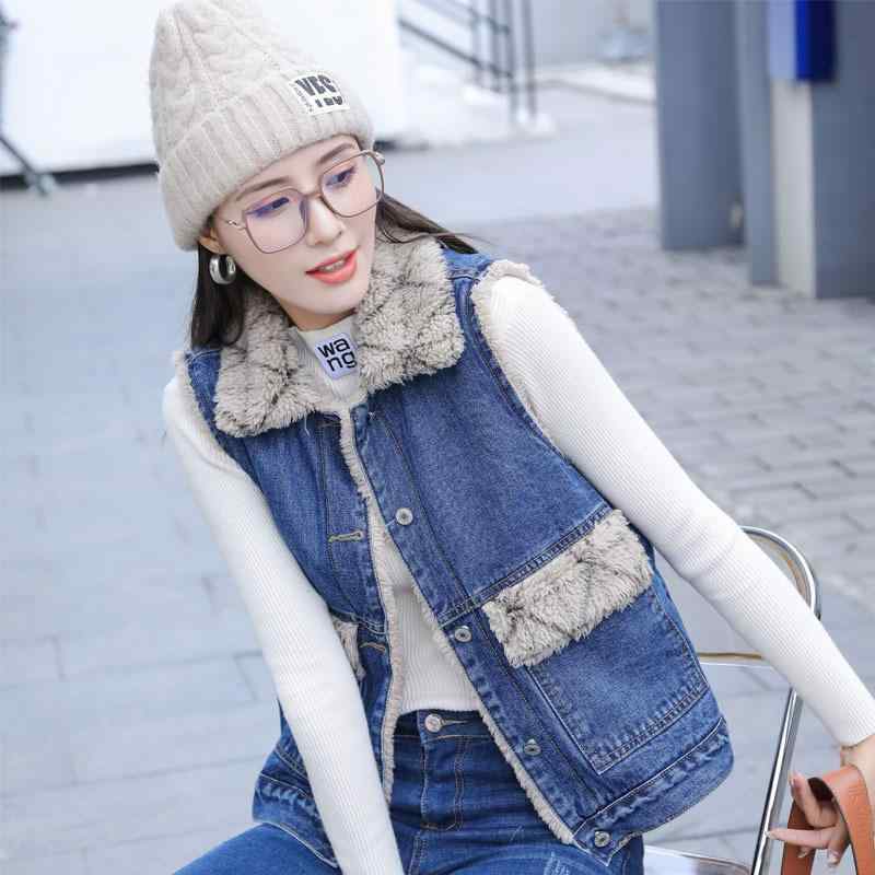 ベスト レディース 秋冬 カジュアル チェック柄 デニムコットン 羊毛 ふわふわ スリム 修身 格子 毛绒 背心 冬季 休闲