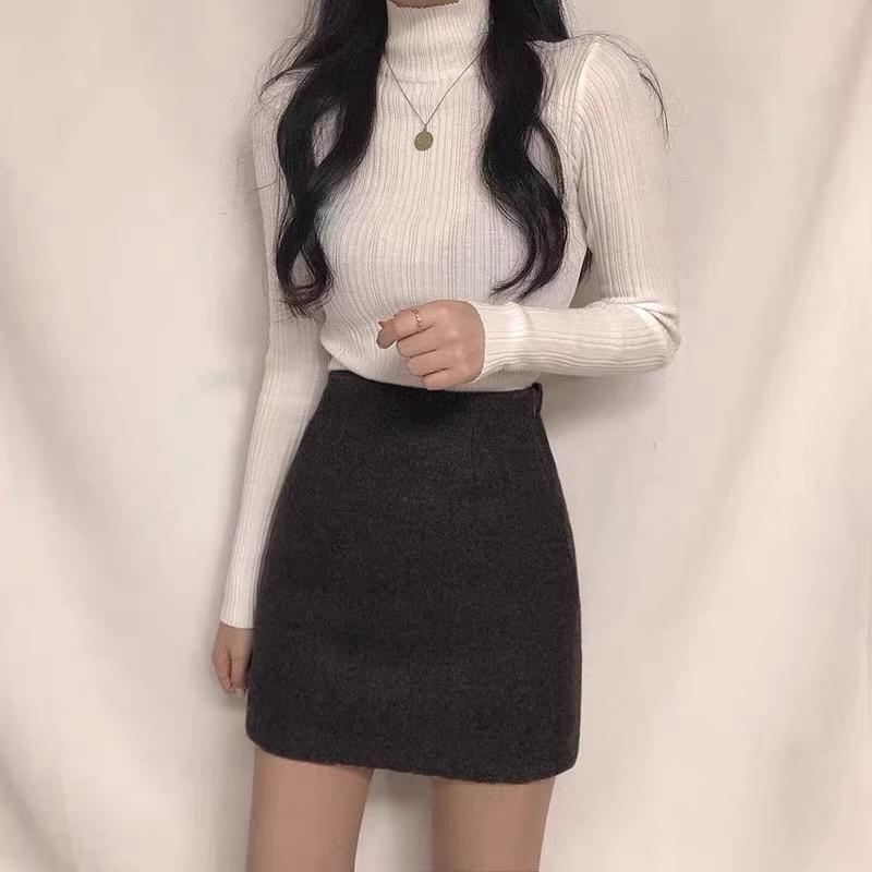 スカート レディース 秋冬 ブラック ハイウエスト Aライン 包臀 ショート ウール 毛織り 小柄 スリム タイト 膝上 暖か スタイリッシュ