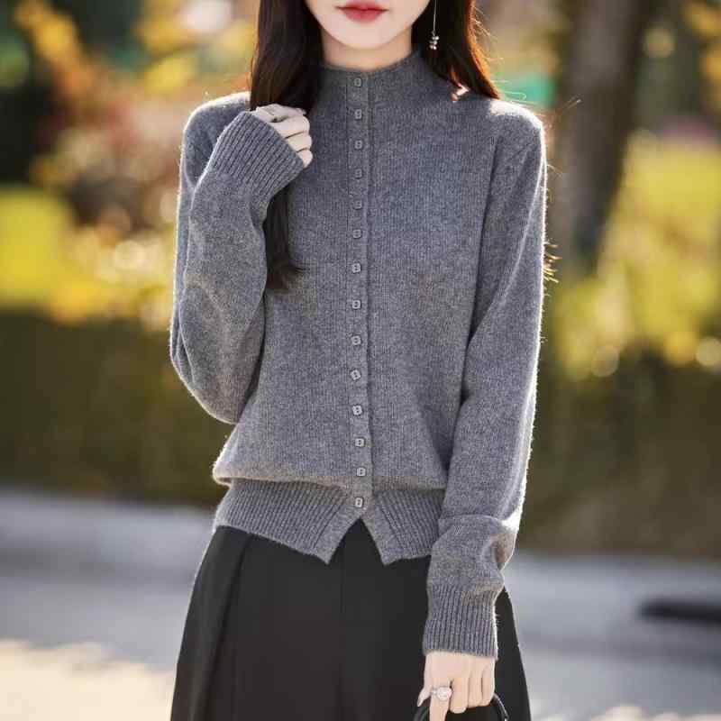 秋冬 レディース ニット カーディガン スタンドカラー ハーフハイネック 高級感 針織 セーター トップス 開衫 上衣