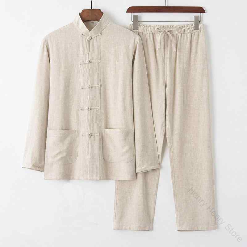 メンズ 男性用 春夏 綿麻 コットンリネン 長袖 ゆったり リラックスフィット 唐装 チャイナ服 中華風 民族風 レトロ クラシック 太極拳服 上下セット リラックスウェア 部屋着 肌触り良い通気性抜群の快適デザイン 伝統的でおしゃれな中華スタイル