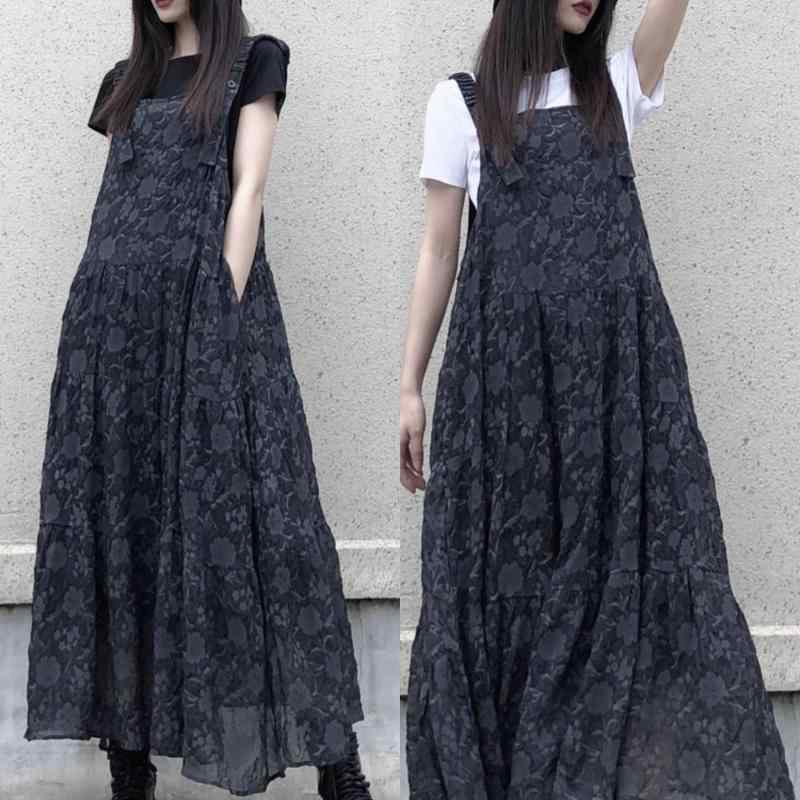 花 おしゃれ レディース ゆったり 文学的 通勤 デイリーユース ジャンバースカート 休日 万能 サマーシルク ロングドレス カジュアル 万能コーデ リゾート 夏