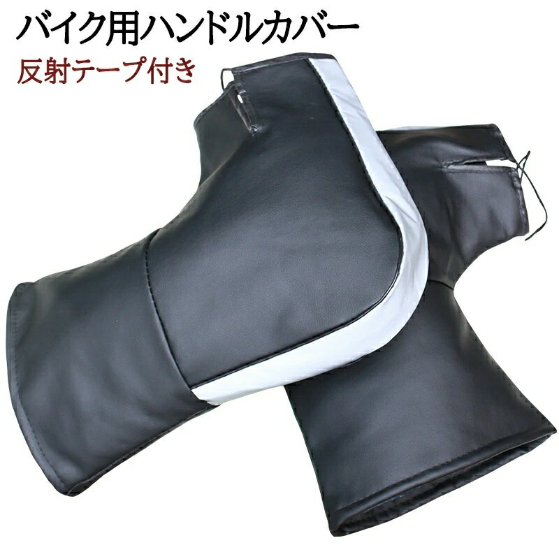 バイク用ハンドルカバー 防水防寒 防風対策 ハンドルカバー ハンドルウォーマー 原付ハンドルカバー 裏起毛 極厚 PUレザー素材 反射テープ付き 色褪せない ミラー開口部調節可 防撥水 簡単取り付け フリーサイズ