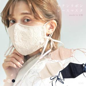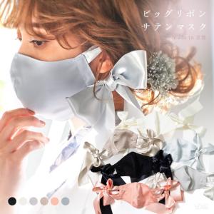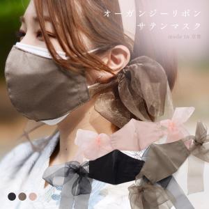 マスク 冷感 おしゃれ 日本製 レディース 洗える 布 夏用 立体 黒 リボン サテン【ゆうパケット】