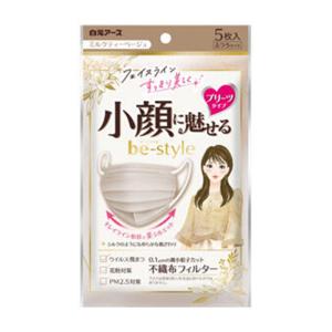 白元アース 不織布 マスク ビースタイル プリーツタイプ ふつうサイズ ミルクティーベージュ 5枚入り 使い捨てマスク メール便対応(2個まで) 4902407582362