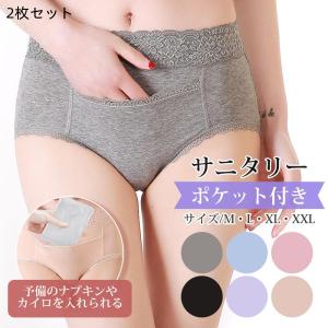 2点セットサニタリーショーツ 吸水ショーツ 生理用 下着パンツ コットン 通気快適 昼用 夜用 吸収 漏れない 安心 ハイウエスト ポケット付 防水 抗菌 防臭 温活