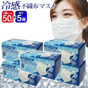 【新入荷】冷感マスク 不織布 50枚×5箱セット 花粉 冷感グッズ 白 250枚入 立体マスク 使い捨てマスク 衛生的 夏用 ひんやり /80S◇ 50P冷感マスク5箱