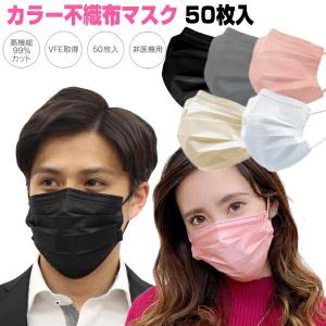 高機能99%カット 不織布マスク 50枚入り 普通サイズ 小さめサイズ 女性 子供 白 ピンク ベージュ ブラック グレー カラーマスク 快適 対面 花粉 ほこり