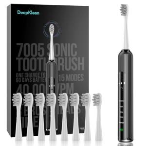 電動歯ブラシ Deepklean 音波 ソニック 歯ブラシ IPX7防水 8本替えブラシ 15つのモード ハブラシ 歯ぶらし 歯磨き 収納ケース