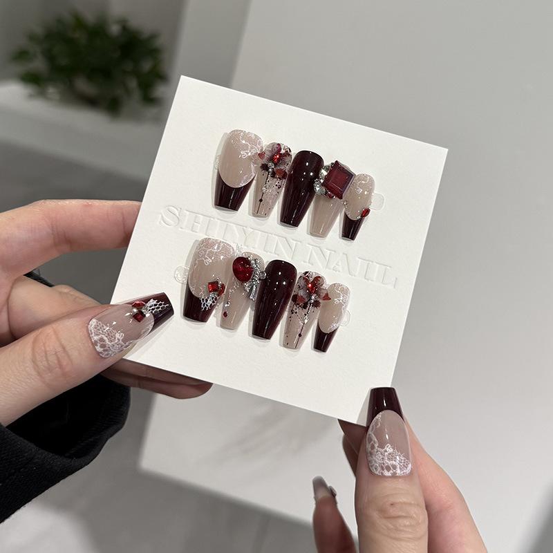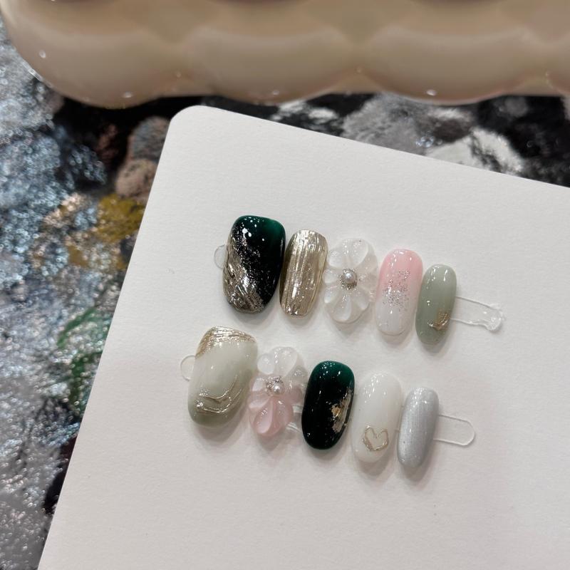 レディース ネイルチップ ハンドメイド 手描き 格子柄 取り外し可能 小衆デザイン ファッションアクセサリー 日常使い 簡単装着 指先デコレーション ユニークスタイル