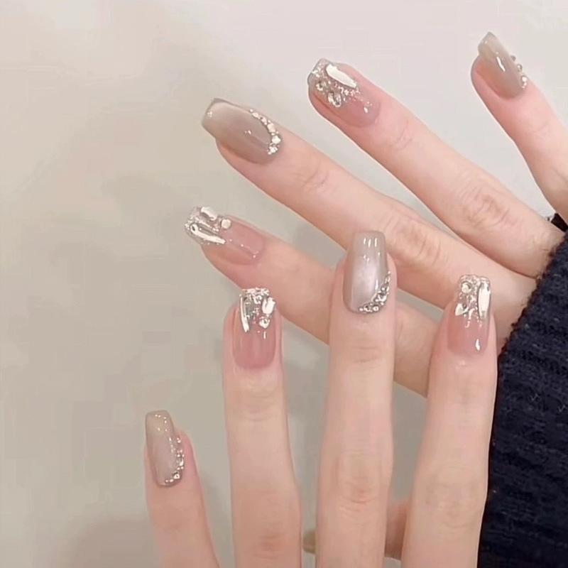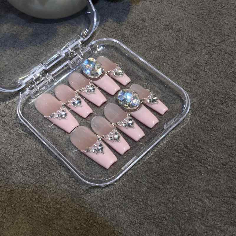 ネイルシール レディース ロングタイプ 透け感 ハートモチーフ ジルコニア キラキラ 高級感 美甲 指甲パッチ 完成品 アートネイル 爪用ステッカー セルフネイル 流行デザイン かわいい 女性向け 透明素材 装飾パーツ 卸売対応