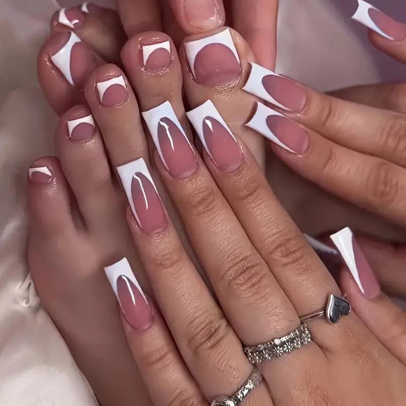 ネイルチップ レディース フレンチスタイル 白 エッジ デザイン 手足用 ファッション セット 288枚 スタイリッシュ アートネイル モダン エレガント シンプル