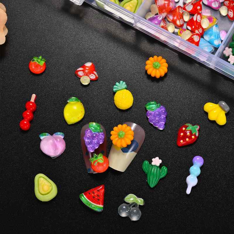 レディース ネイルパーツ 立体デコレーション フルーツモチーフ いちご チェリー サボテン きのこ ミックス アソートセット 15コンパートメント 収納ボックス